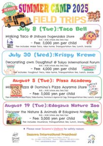 *遠足:ー ウィーク3・6・7・9(場所・費用は、以下「遠足コラム参照」割引対象外)